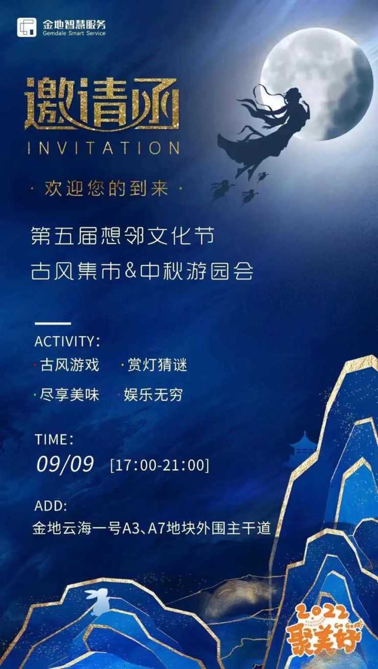 中秋节,起源于上古时代,在唐朝时诞生了许多咏月名句和嫦娥奔月、吴刚伐木、玉兔捣药等神话故事结合使之极具浪漫色彩,今天一起回顾金地智慧服务集团云贵区域公司在管金地云海一号项目的中秋市集古风活动。