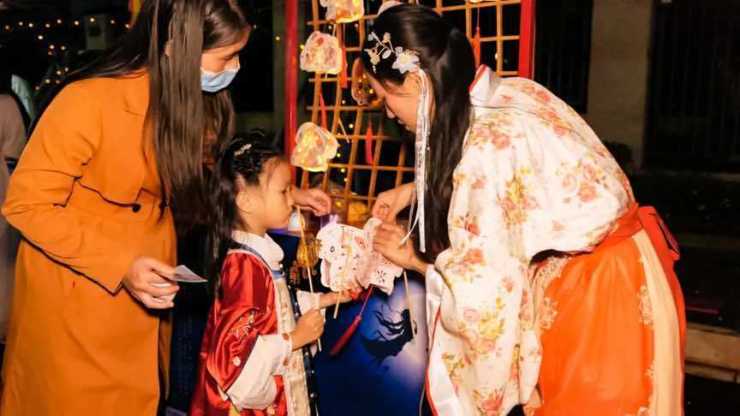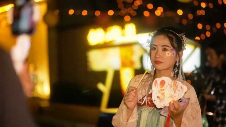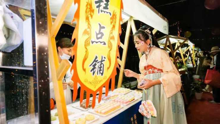 悠悠古韵,灯火阑珊,一场梦回古风中秋市集来啦!超20家古风商铺排列在道路两侧,交错悬挂灯笼,以及栩栩如生的锦鲤等陈设,琳琅满目。各种商铺,糖葫芦,传统工艺品,美轮美奂的古风服饰,沉浸式逛吃逛吃。走进市集,古风中秋氛围直接拉满。