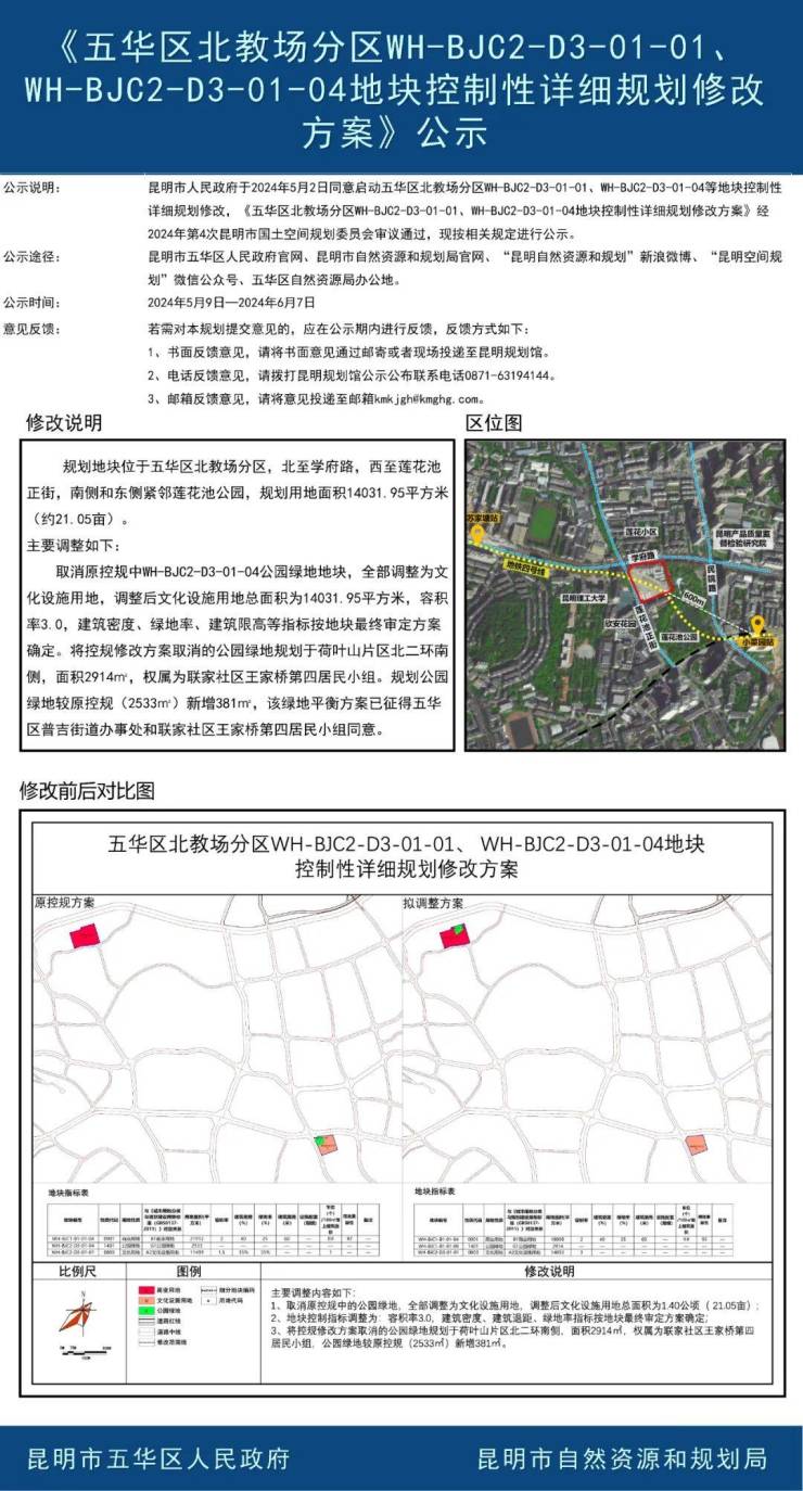 五华区北教场分区WH-BJC2-D3-01-04公园绿地地块全部调整为文化设施用地
