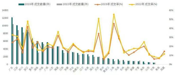 2022、2023年1-9月部分省市法拍房成交情况