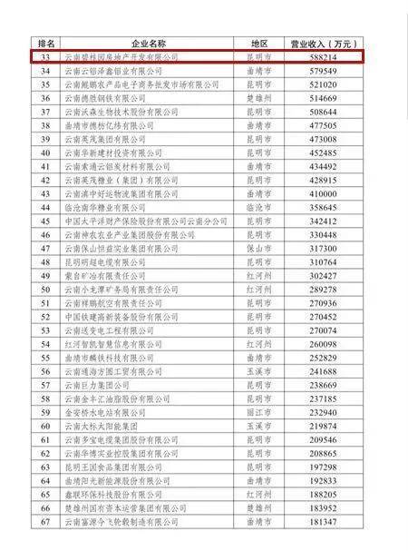 其中,昆明共有59家企业上榜,曲靖有12家、玉溪有10家、红河有7家、楚雄有5家企业上榜。滇中地区合计有93家企业上榜。