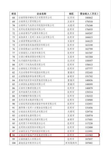 今年是“云南企业100强名单”发布的第16年,由云南省企业联合会参照国际通用做法,按照企业自愿参加、自愿申报的原则,以2022年企业营业收入作为入围标准,推出的百强名单。