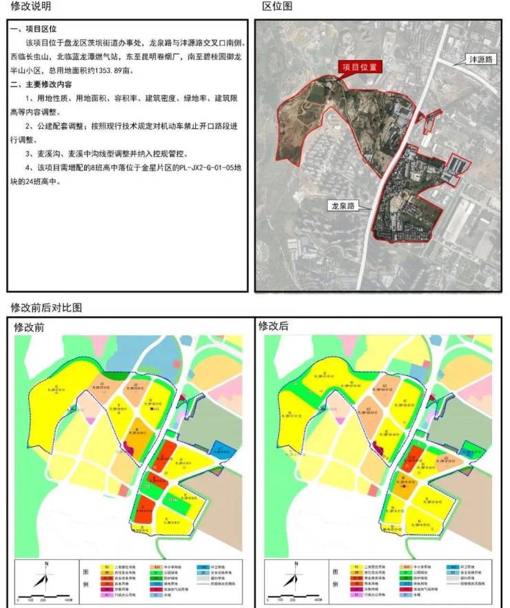 同期内调规的还有盘龙区植物园分区中的307.53亩地,根据昆明市自然资源和规划局发布的《盘龙区植物园片区PL-ZWY-E6-02-01等4个地块(蓝龙潭燃气站)控制性详细规划修改方案》,该地块北接重机厂生活区,南临麦溪村城改项目。