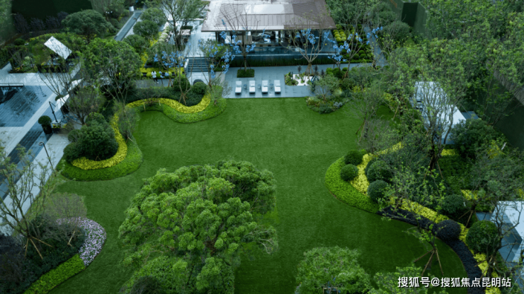 在园林景观中,锦粼天序通过围合式布局,打造了千万级顶奢景观,一轴一心四大主题五大庭院花园,并在2021年6月超前呈现全球仅0.03%的人能欣赏到的世界景观孤品。