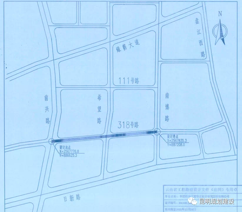 西山318号路(前兴路-南博路)新建工程,起于前兴路,止于南博路,道路全长585.9米,规划红线宽25米,规划道路等级为城市支路。