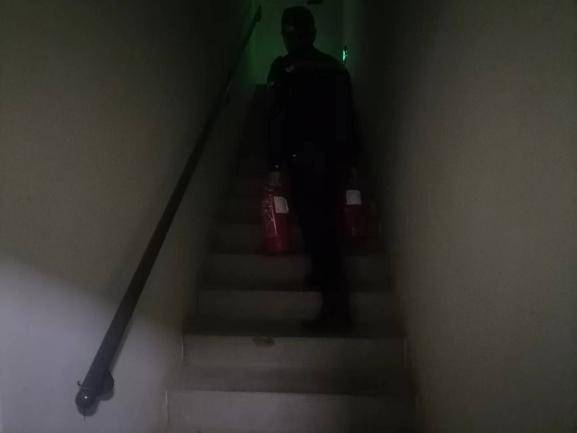 设备维护组李文龙、李永兵、李雷杰、陈德永于22:05达到设备房,按照消防应急预案规范迅速采取断电动作、电梯停至动作、启动排烟风机动作、启动消防水泵动作,快速反应,为后续灭火工作提供决胜支持。