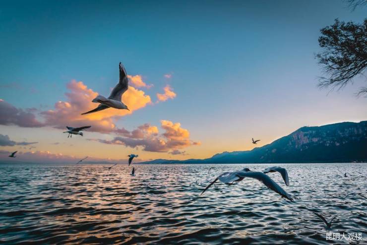 有时候,光在昆明也是调皮的。一会儿来,一会儿走,极尽灵动、活泼。因为昆明经常下雨,所以“东边日出西边雨”的现象时有发生,有时上一秒还是阳光普照,下一秒便下起了小雨。而雨一旦停止,那光便又迫不及待地从云层里透出来,霞光普照,照得滇池的水面一片波光粼粼,颇有半江瑟瑟半江红之感。