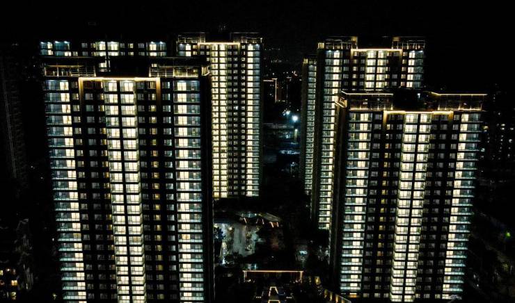 全楼栋通电试灯,不仅可以测试通电后线路的稳定性,同时这种壮观的集体亮灯场景,也是对楼盘交付力最优质的宣示。