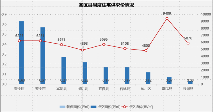 热点郊县:安宁主城成交量上涨,创佳墅府低密产品带动均价上涨 。太平成交量下降,金地自在城带动均价有所上涨。晋宁成交量上涨,七彩云南古滇名城带动均价上涨 。嵩明成交量回升,嵩明嘉园及碧桂园天樾以价换量影响均价下降。