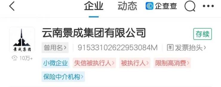 企查查数据显示,云南景成集团有限公司目前已成为失信被执行人、限制高消费企业。