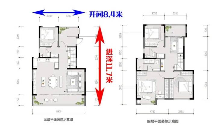 按此标准来看,该户型的进深、开间比例为1:0.76,是比较方正的户型,也没有奇怪的房间布局,8.4米的客厅开间尺度足以配的上改善产品的定义了。