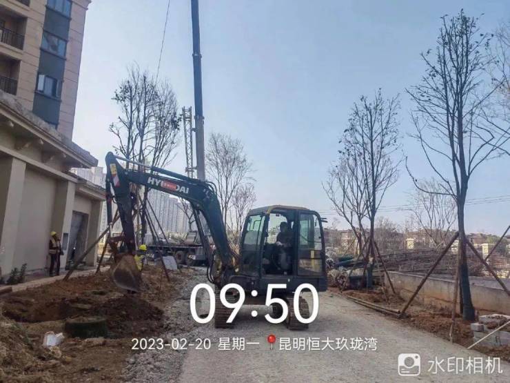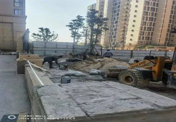 洋房:园区道路水稳料施工完成,4-6、9号楼路沿石安装完成;大树累计种植85棵;4-6号楼前园建石材铺装面平整完成,准备支模浇筑基层;临时施工用水、电已恢复;配电房设备安装完成,通风累计完成80%。