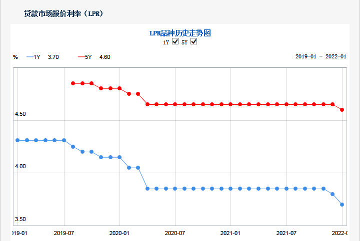 中国人民银行授权全国银行间同业拆借中心公布,2022年1月20日贷款市场报价利率(LPR)为:1年期LPR为3.7%,5年期以上LPR为4.6%。以上LPR在下一次发布LPR之前有效。