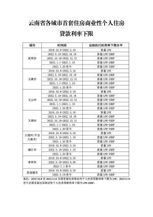 云南存量首套房贷利率调整下限出炉