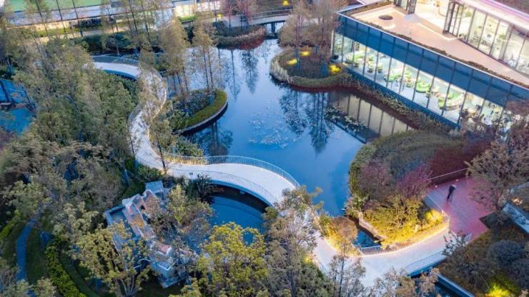 目前,约3000㎡的中央湖景目前已呈现,贯穿项目中心轴,并借地势高差同步打造樱花溪谷观景走廊,让生活于此的人感受到来自“阳光、樱花、山湖”的独特之美。