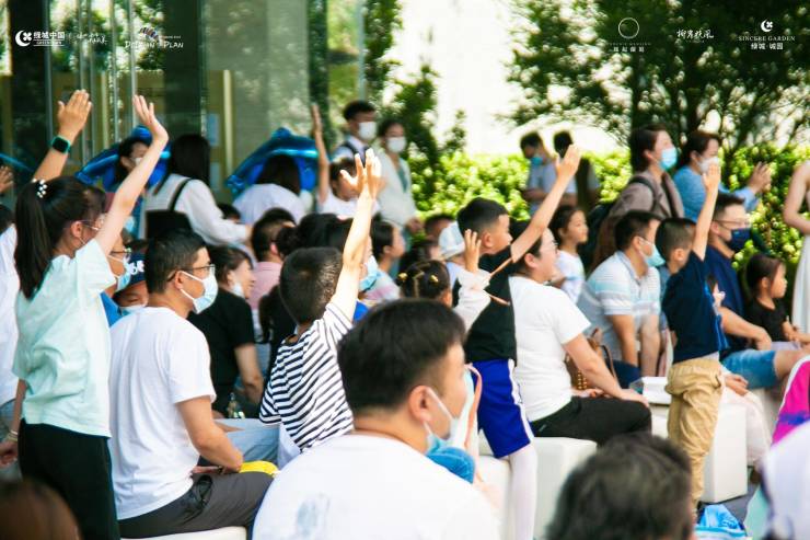 在大家满怀期待的目光中,蛙泳世界冠军、2022绿城海豚大使罗雪娟登台亮相。在与孩子们的互动过程中,罗雪娟带着孩子们一起游戏、一起玩耍,鼓励孩子们勇敢的表现自己,说出自己的愿望和理想。