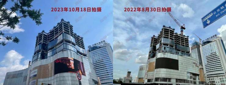 今年10月和去年8月楼栋主体几乎是一模一样的高度,本来据传闻有过短暂复工,这样一对比,似乎也是毫无进展。