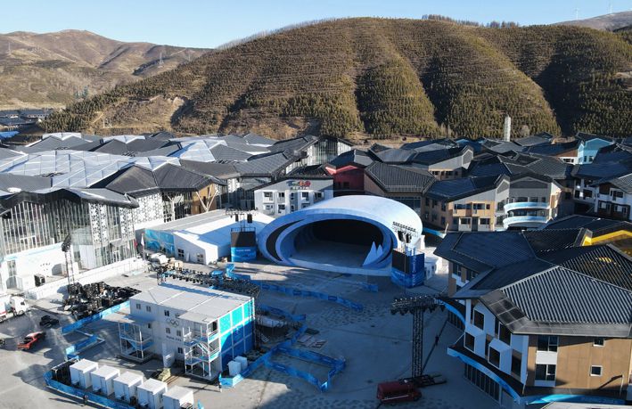 张家口崇礼成为多家房地产开发企业冰雪生意的“逐鹿场”。图为位于崇礼区太子城冰雪小镇的北京冬奥会和冬残奥会张家口赛区颁奖广场舞台 新华社图