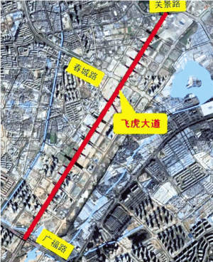 由市住房城乡建设局负责建设的飞虎大道北段建设工程,北起关景路,南止于广福路,接现状飞虎大道南段(巫家坝路),长约4.2千米,为城市主干路。飞虎大道建设工程指挥部负责建设飞虎大道北段,从2019年开始陆续建设了春城路南段。2021年相关部门对北段道路断面进行优化调整,暂停施工。目前断面优化调整工作完成,重新启动有条件实施段的施工。