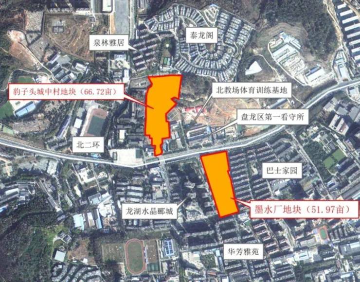 豹子头村城改项目紧邻二环北路,分为二环北部的豹子头村,南部的墨水厂2个地块,总占地约118亩。豹子头村占地约66.72亩,容积率1.7;墨水厂地块占地约51.97亩,容积率1.5,均为住宅用地。