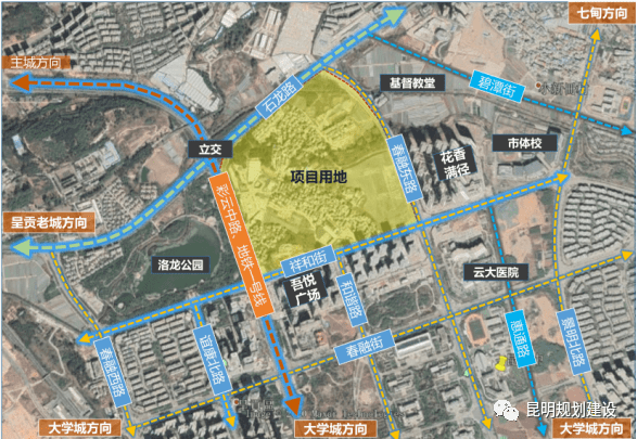 从位置来看,地块位于呈贡核心区,东至春融东路,南至祥和街,北邻规划5号路,改造总用地约120亩。周边一公里范围内,集全了已通车的地铁站、两大公园、云大医院呈贡分院、名校昆三中以及已开业的商业体吾悦广场等。