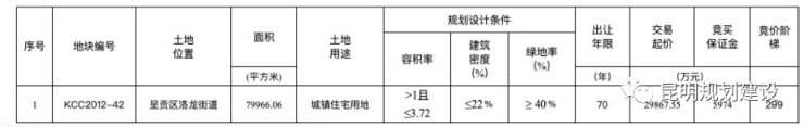 目前,交易网尚未披露地块具体交易细则,不过KCC2012—42号地块曾多次在土地推介会亮相,为呈贡洛龙村城改一期土地。
