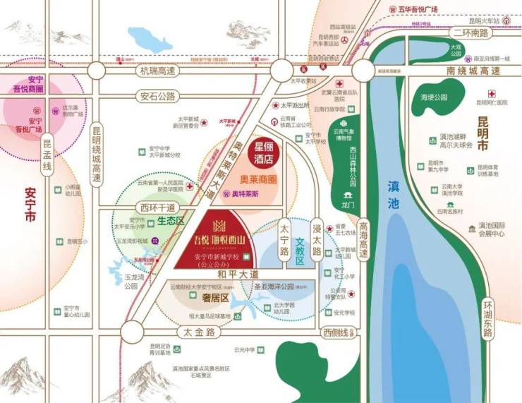 太平新城作为昆明副中心,拥有山水环伺的独特自然风光,形成健康、养生、养老、文化旅游等产业优势,同时随着14五规划的实施,昆安一体化加速发展,太平新城已融入昆明主城半小时生活圈。太平将迎来井喷式发展,区域价值不可估量,是投资买房的价值区域。