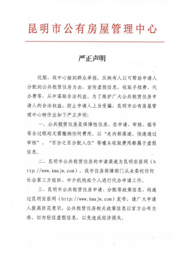 7月8日,昆明市公有房屋管理中心发布严正声明,详情如下↓