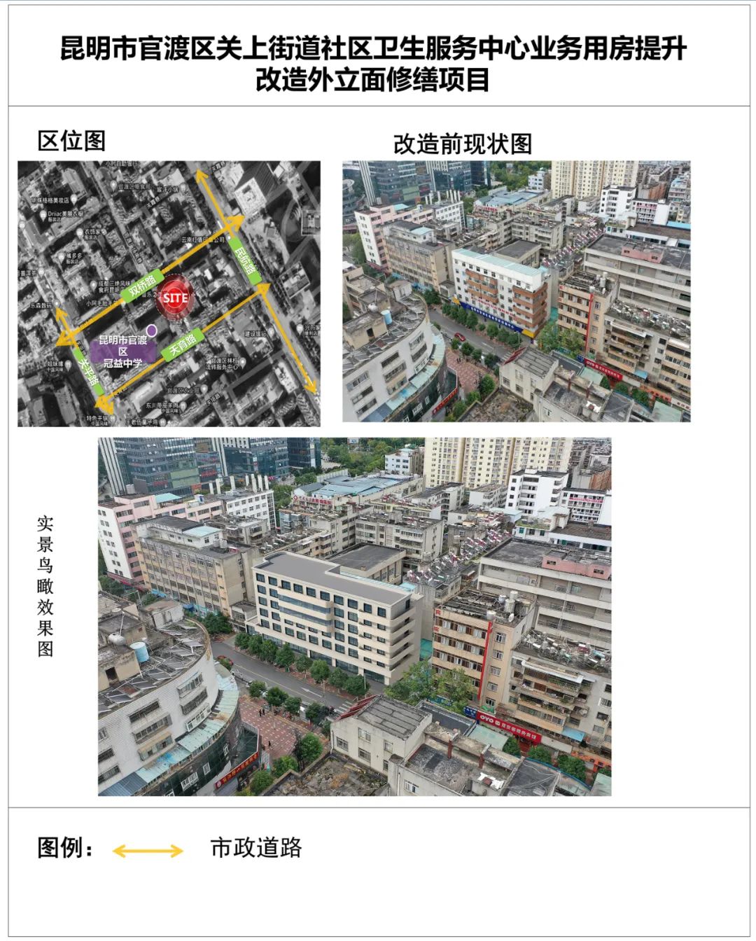 昆明市官渡区关上街道社区卫生服务中心业务用房提升改造外立面修缮项目批前公示
