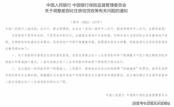 5月15日,中国人民银行、中国银行保险监督管理委员会发布通知,宣布调整首套住房商业性个人住房贷款利率下限。这是贷款市场报价利率改革以来,首次下调首套房贷款利率下限。