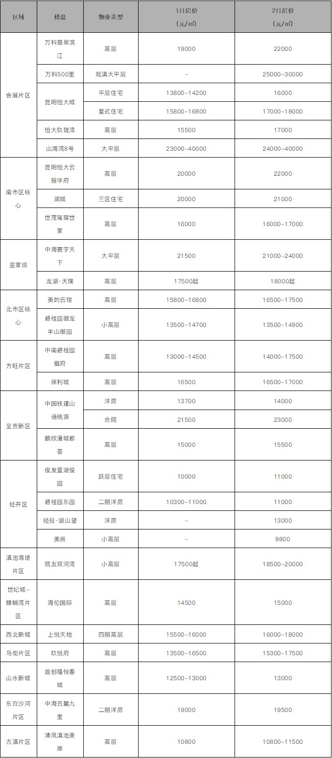 昆明2月仅3区域房价下跌 经开区一路看涨单价终破万!
