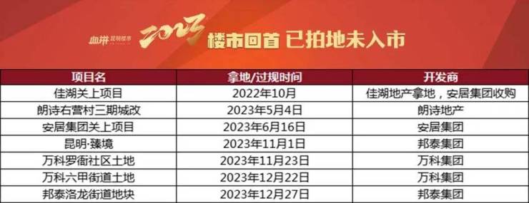 除了以上已经亮相的新盘外,2023年至少还有7个项目已经拿地,但还没有面市。