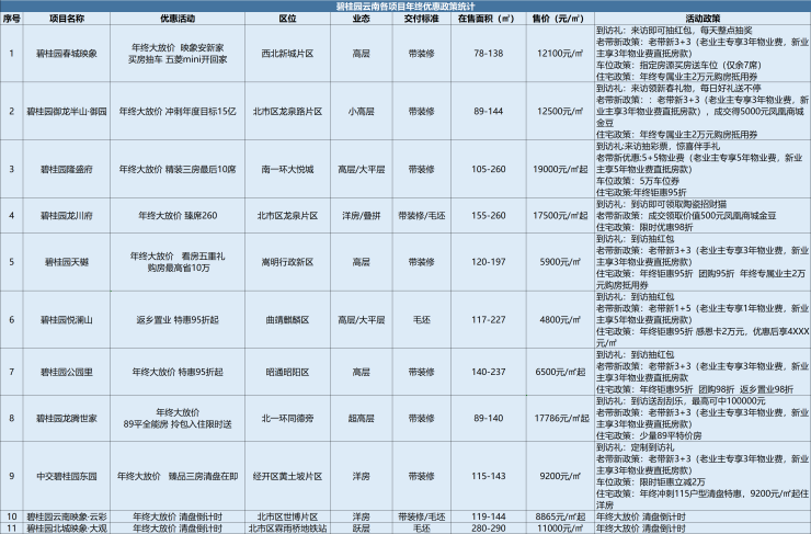 年终,碧桂园云南区域、碧桂园春城映象、碧桂园御龙半山、碧桂园隆盛府、碧桂园龙川府、碧桂园天樾、碧桂园悦澜山、碧桂园公园里、碧桂园龙腾世家、碧桂园东园,、碧桂园云南映象、碧桂园北城映象3城11盘联动,年终大放价。
