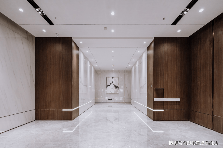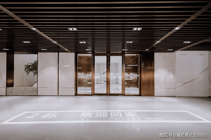 汇德里精琢地下车库入户大堂,整个车马厅顶部采用木纹铝板造型,顶面为灰色乳胶漆天花,高颜值礼遇,让每一步倍显尊崇;环氧地坪设计,提升美观性的同时保障舒适度,整体空间宽阔敞亮,让归家更有仪式感。
