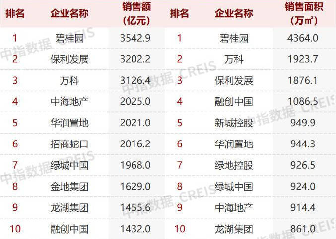 2022年1-9月中国房地产企业销售业绩排行榜(TOP10)