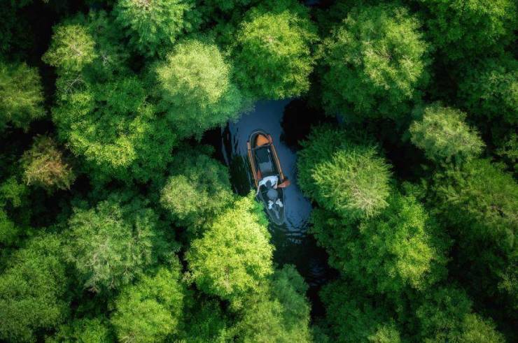 从龙湖·揽境出发轻松抵达海洪湿地公园,与西山睡美人隔海相望,试想轻挥船桨,小舟在整齐排列的水杉林中穿梭,仿佛闯入一个唯美秘境之地,颇有“密林深处好泛舟”的韵味。