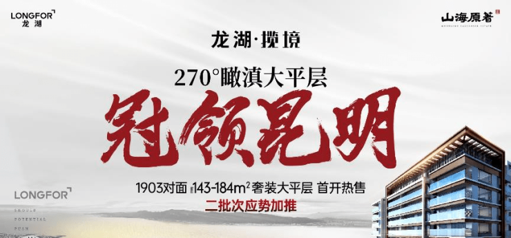 龙湖·揽境,不负一城热爱,2号楼首开倾城热销,1号楼270°瞰滇环幕应势加推在即!建面约143-184㎡瞰滇奢装大平层样板间,恭迎品鉴。