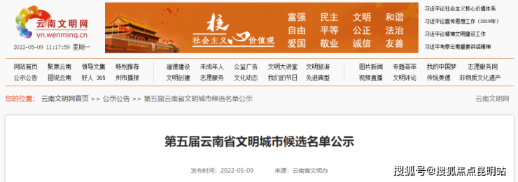 根据云南省文明城市创建办法有关规定,为体现公开公正公平原则,现将第五届云南省文明城市候选名单予以公示,听取社会各界意见,接受广大群众监督。如有意见建议,可通过电话或电子邮件向省文明办反映。