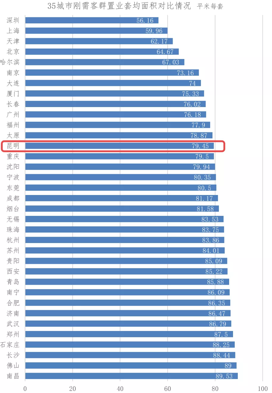 昆明刚需置业套均面积为79.45平方米