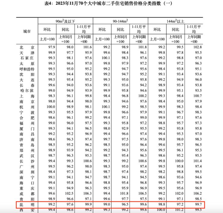 12月15日,国家统计局发布了11月份70个大中城市商品住宅销售价格变动情况。从数据来看,11月70个大中城市二手房价环比降幅扩大,下降城市数量增至69个,全国二手房下跌城市数量创新高,昆明二手房价格降幅明显。