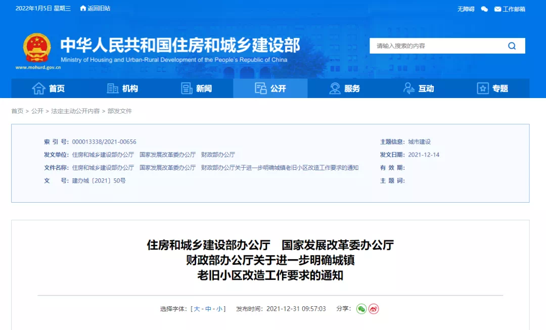 近日住房和城乡建设部办公厅、国家发展改革委办公厅、财政部办公厅发布《关于进一步明确城镇老旧小区改造工作要求的通知》(以下简称《通知》)明确了城镇老旧小区改造工作衡量标准