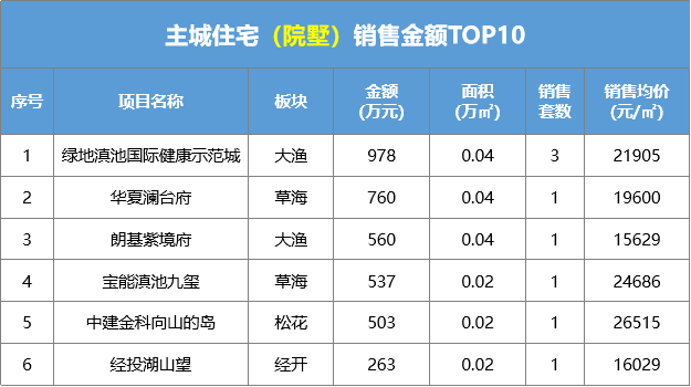 本周住宅成交6.3万㎡,环比下降9%,市场热度连续下滑。主力成交项目为卓越滇池晴翠0.3万㎡ 、建投朝朝暮暮0.2万㎡ 和俊发观云海0.18万㎡等;