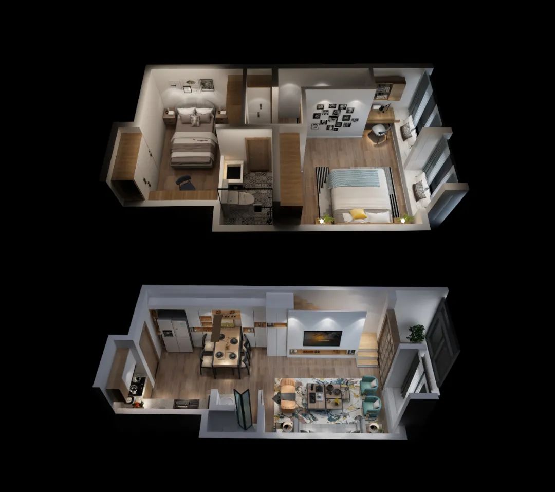 目前,依托与斯维登战略合作,项目锚定有投资需求的客户,推出建面约91㎡的复式空中叠院。70年产权,5.8米挑高、4.8米面宽,可做成双户产品,双层空间,上下独立,空间不打折;单层功能完备,满足居者各项需求;空间布局合理,出租、办公两相宜。