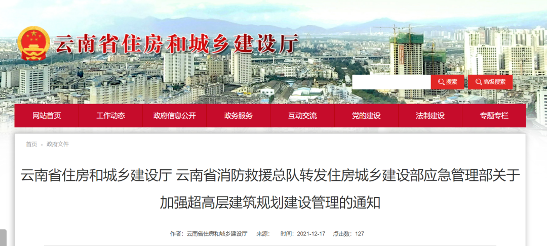 为抓紧完善超高层建筑规划建设管理协作机制,严格管控新建超高层建筑及强化既有超高层建筑安全管理等相关工作,近日,云南省住房和城乡建设厅、云南省消防救援总队转发《住房和城乡建设部 应急管理部关于加强超高层建筑规划建设管理的通知》(以下简称《通知》)。