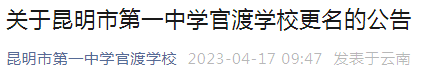 昆明市第一中学官渡学校转公!更名为昆一中学致学校!