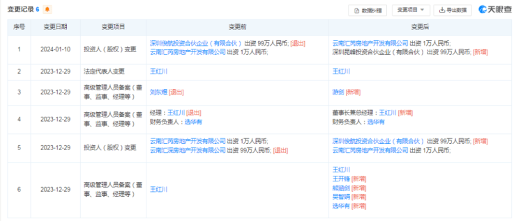 2023年12月-2024年1月,云南汇贤房地产开发有限公司完成了一系列复杂的股权变更。