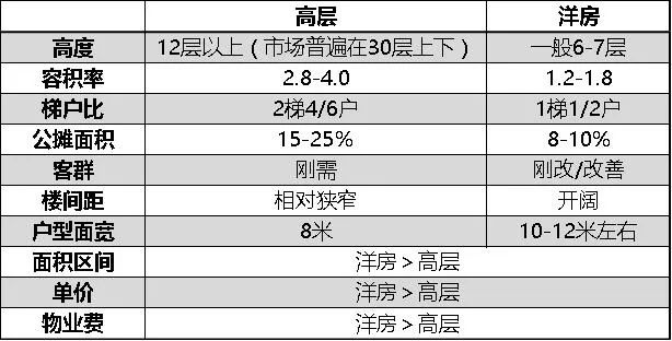 下面的表格,对两种类型的住宅大概有个概述(数据内容以市场上楼盘的一般情况为例)。