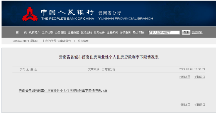 中国人民银行云南省分行网站截图9月1日中国人民银行云南省分行发布云南省各城市首套住房商业性个人住房贷款利率下限情况表详情如下↓ 来源:中国人民银行云南省分行网站…