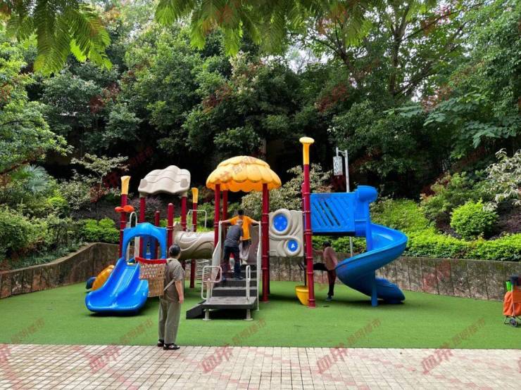 小区内部设施比较简单,凉亭、健身区、儿童游乐区都有设置。