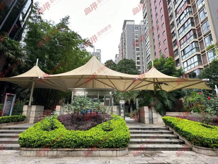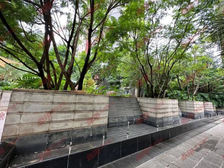 小区大门入口处看得出也设计了水景,但已经没有在使用(就很可惜,大家都设计水景,但是都不用)。